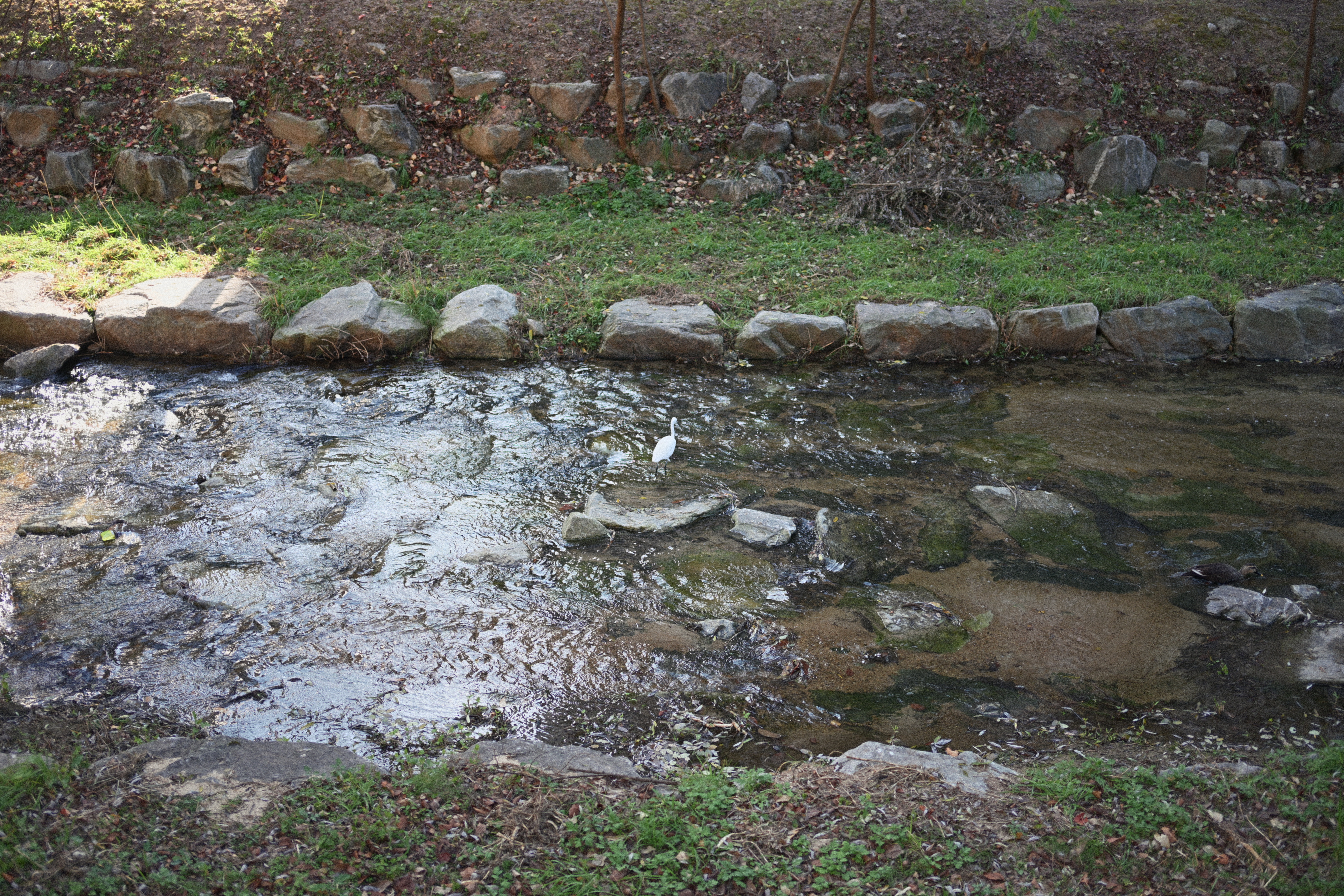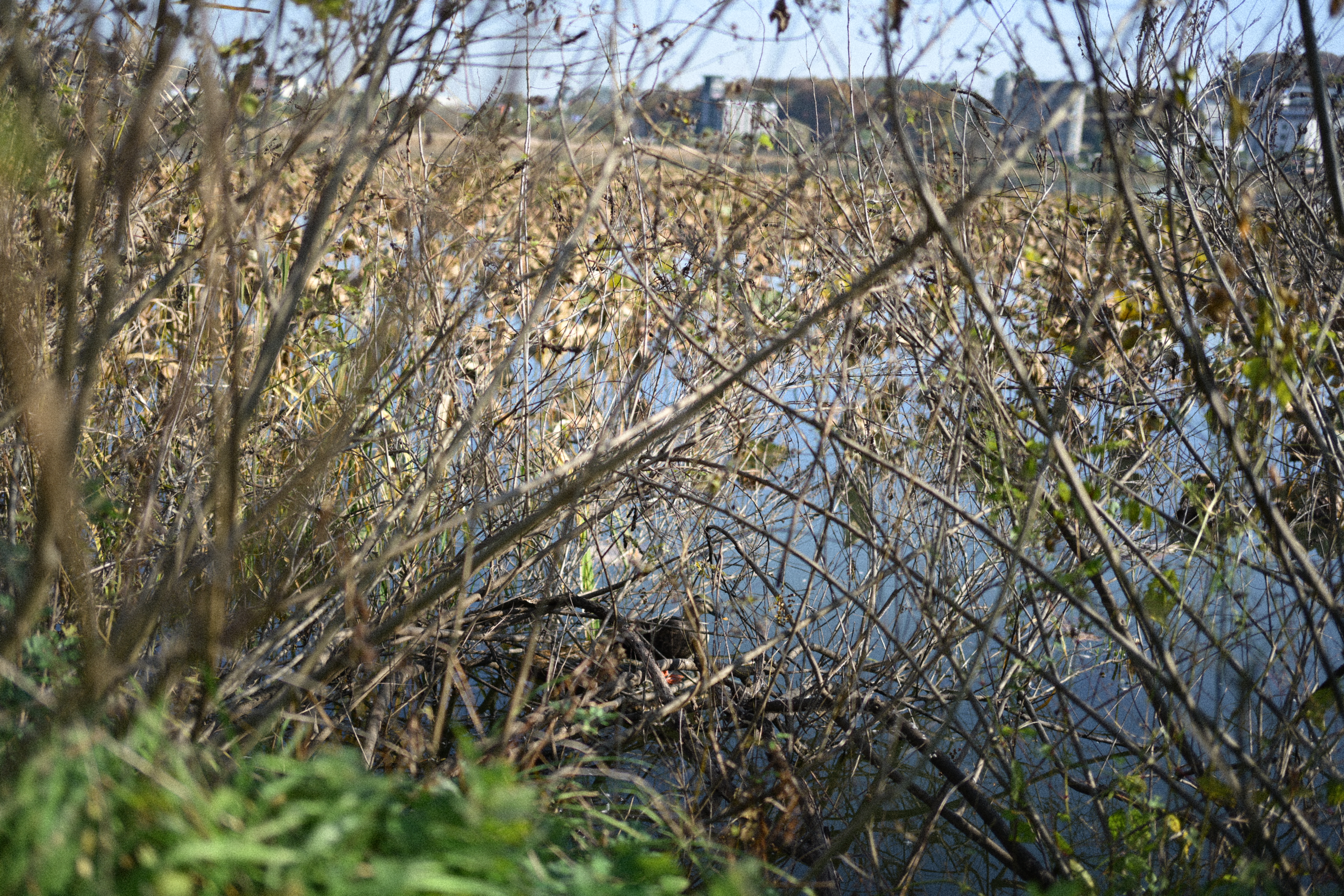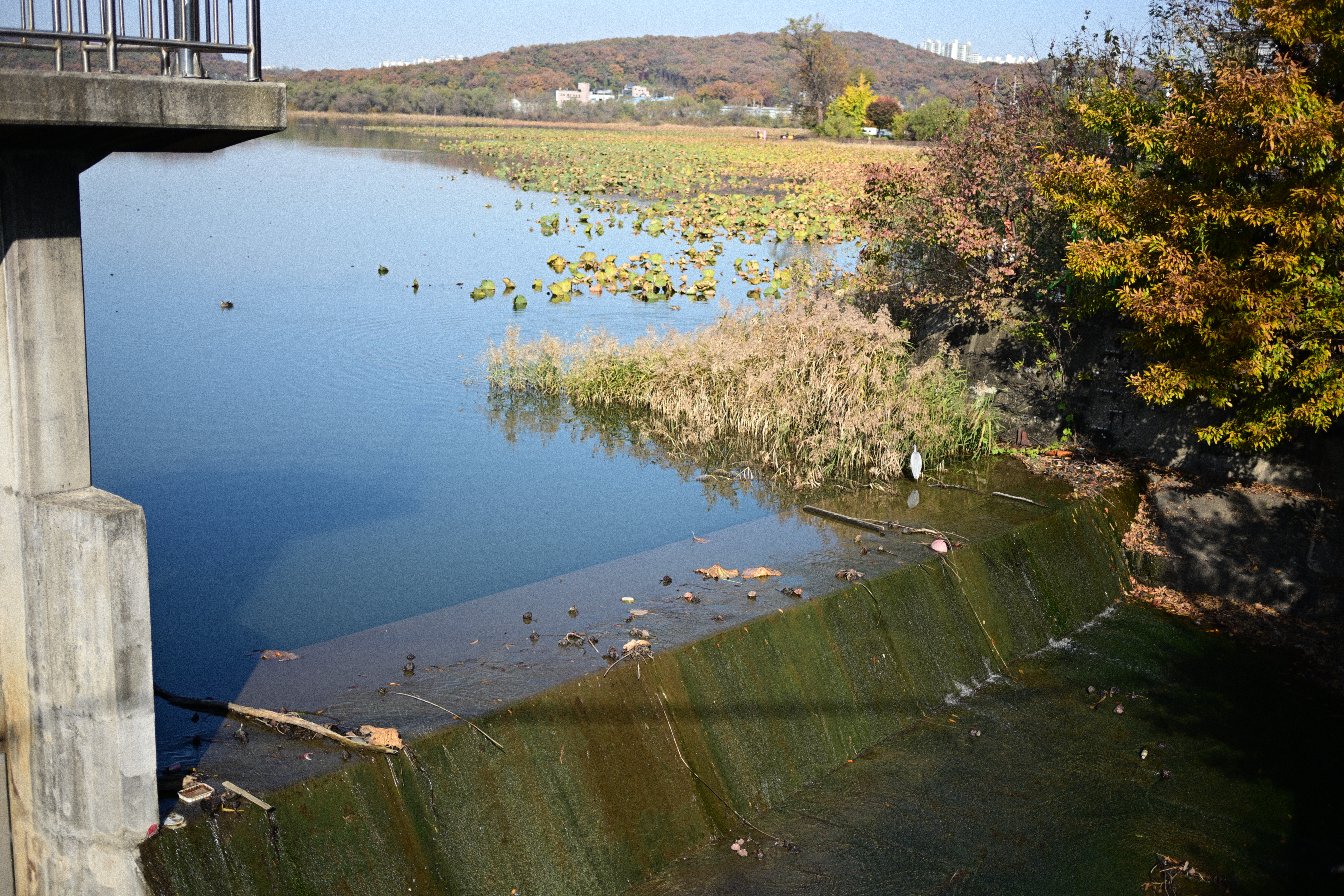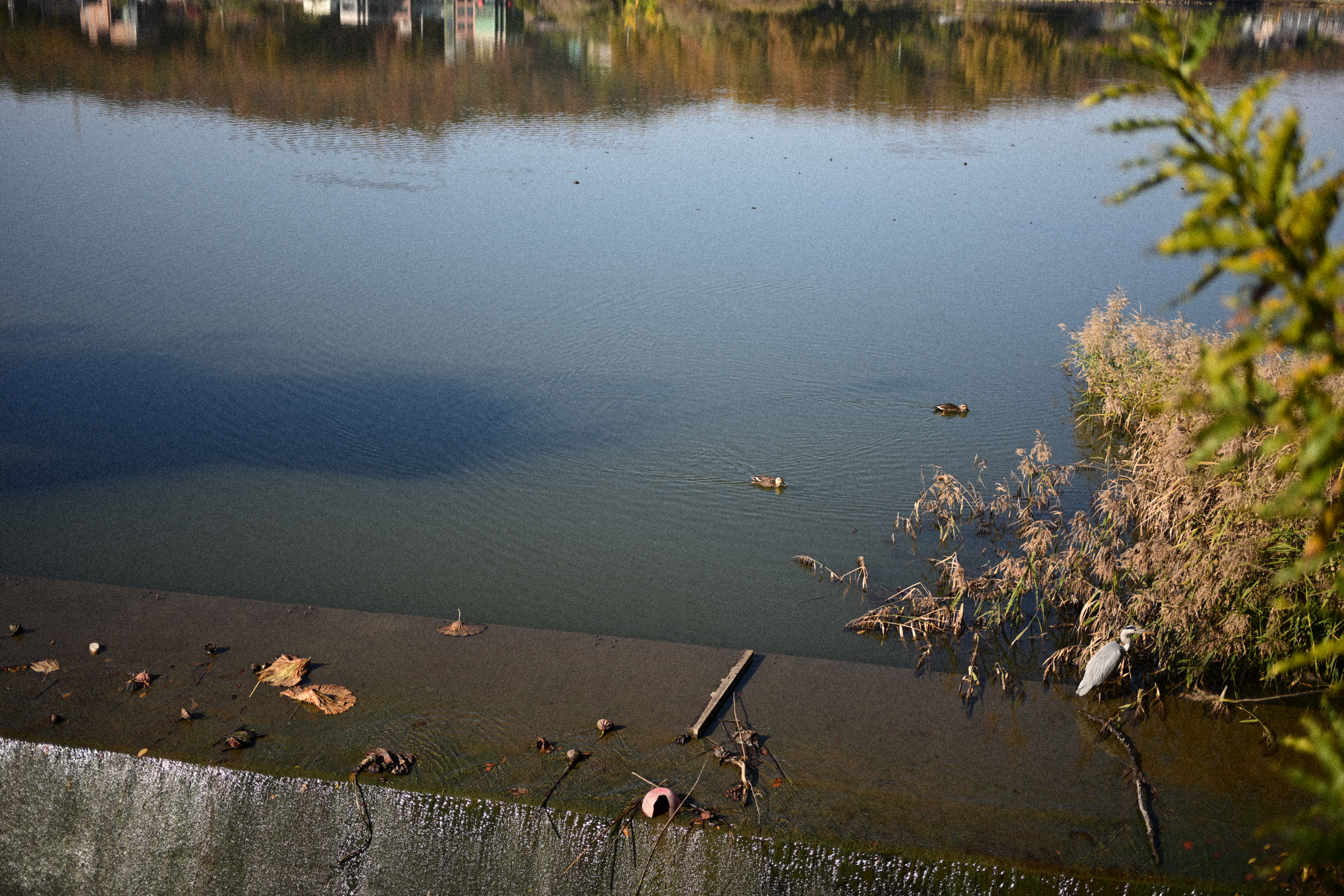 이때는 좀 아쉬웠다. 저 멀리 천천히 헤엄치는 오리들과 물가 쪽에서 가만히 있던 새까지 담아봤지만, 렌즈가 망원이었더라면 더 가까이에서 표정과 움직임을 포착할 수 있었을 텐데 하는 생각이 들더라. 전체적인 분위기는 잘 담겼지만, 피사체를 크게 담지 못해 아쉬움이 남았다. 그래도 물결이 퍼지는 모습과 가을빛이 스며든 갈대 사이의 새를 보고 있자니, 그 자체로 충분히 마음이 편안해지는 순간이었다.