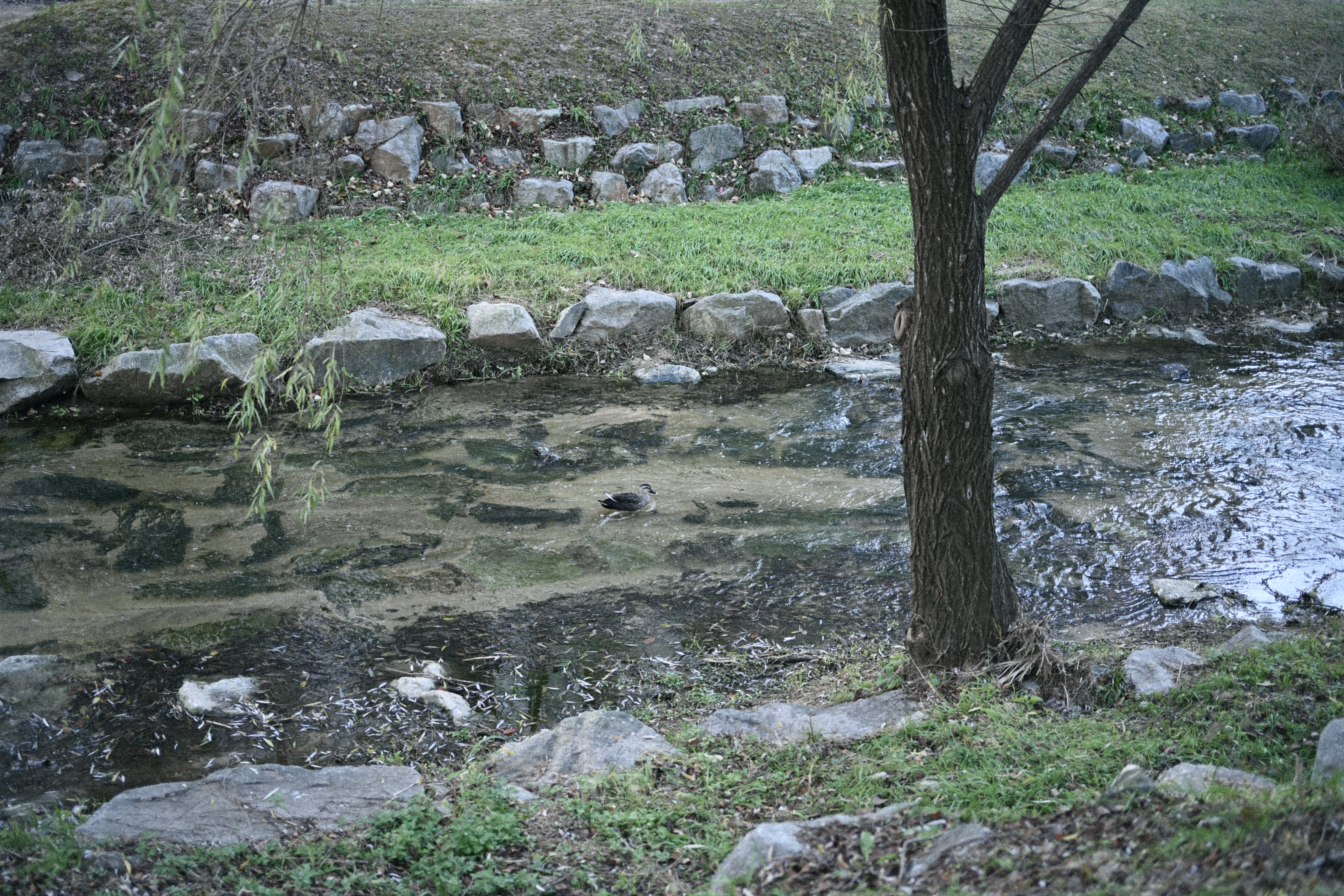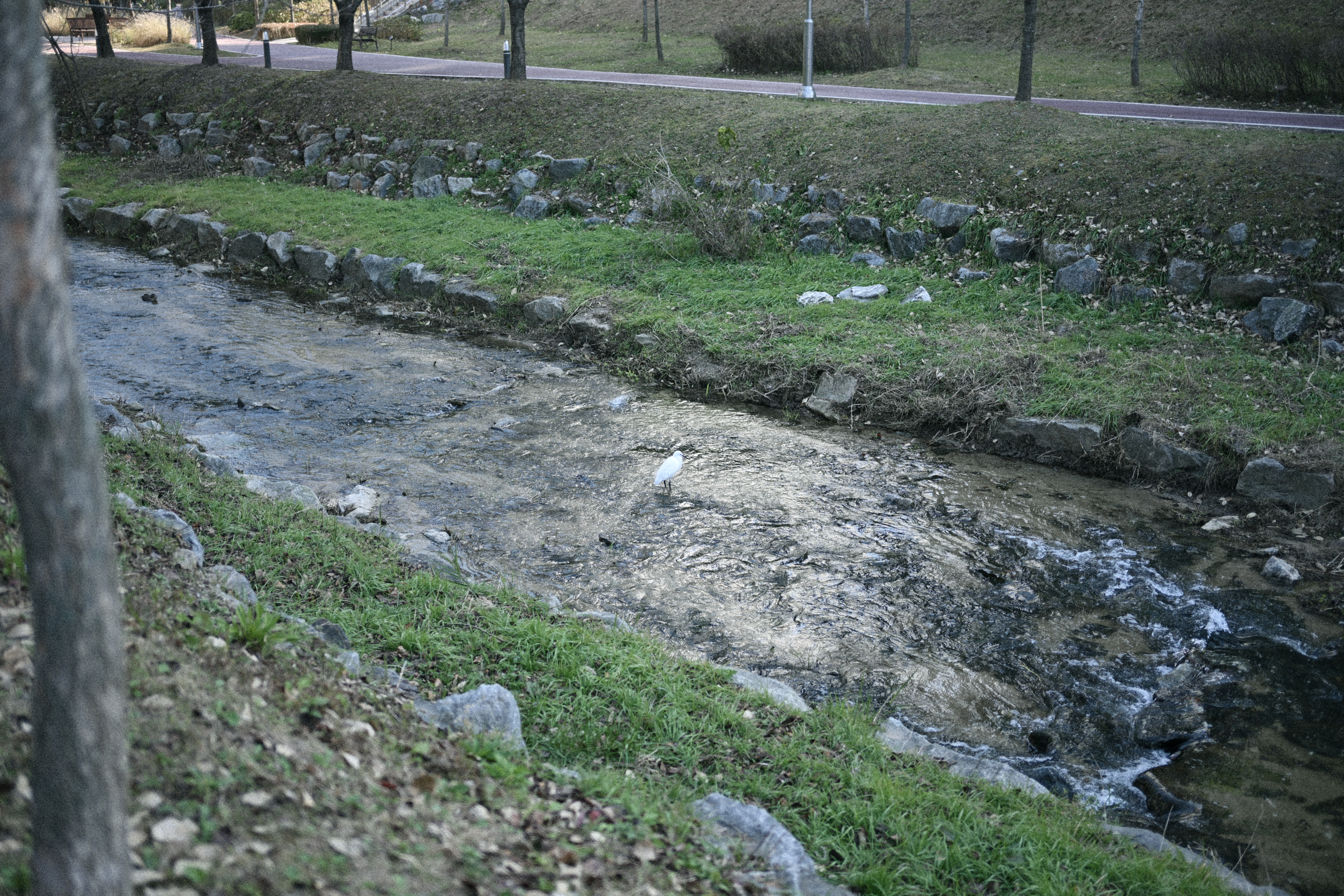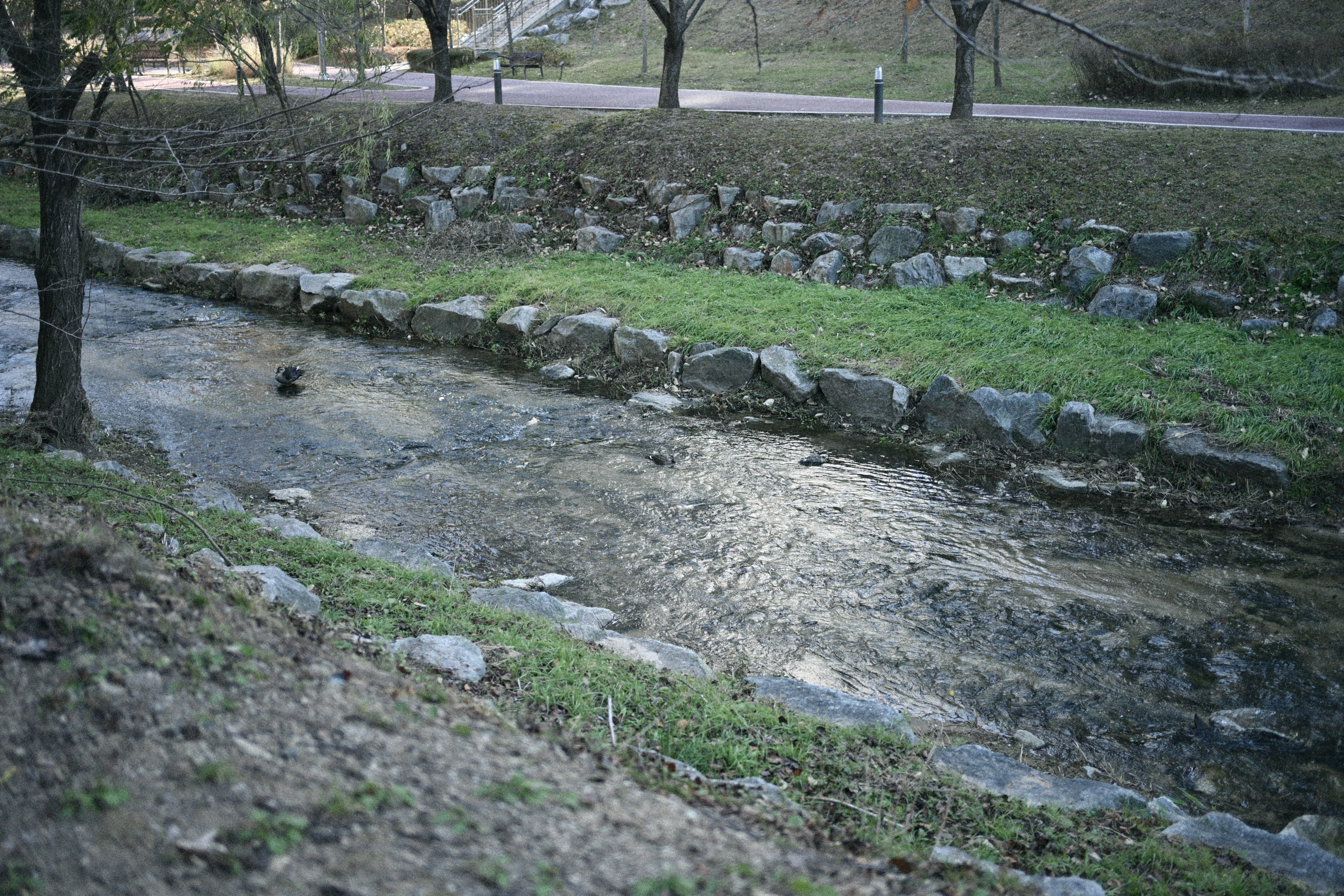습지는 무수히 많은 가지가 사방으로 뻗어 있고, 뒤쪽으로는 물빛이 살짝 비치는 복잡한 구도였는데, 그레인이 그 복잡함을 조금 눌러주면서 오히려 정리해 주는 느낌이 들었다. 사실은 찍고 싶었던 건 새였지만, 주변 가지들이 너무 많아서 새를 찍는 건 쉽지가 않았다. 이런 장면들은 스마트폰으로도 분명 찍을 수 있고, 그레인도 충분히 넣을 수 있다. 하지만 카메라로 찍을 때만 느껴지는, 이 즐거움 같은 것은 아직 스마트폰에서는 잘 느끼기 어렵다. 빛의 방향, 어두운 부분의 깊이, 하이라이트가 번지는 방식까지, 카메라는 조금 더 여유 있게 그 순간을 담아주는 것 같다. 그래서 요즘은 특별한 곳에 가지 않아도, 길을 걷다가도 사진을 찍는 일이 즐겁다.