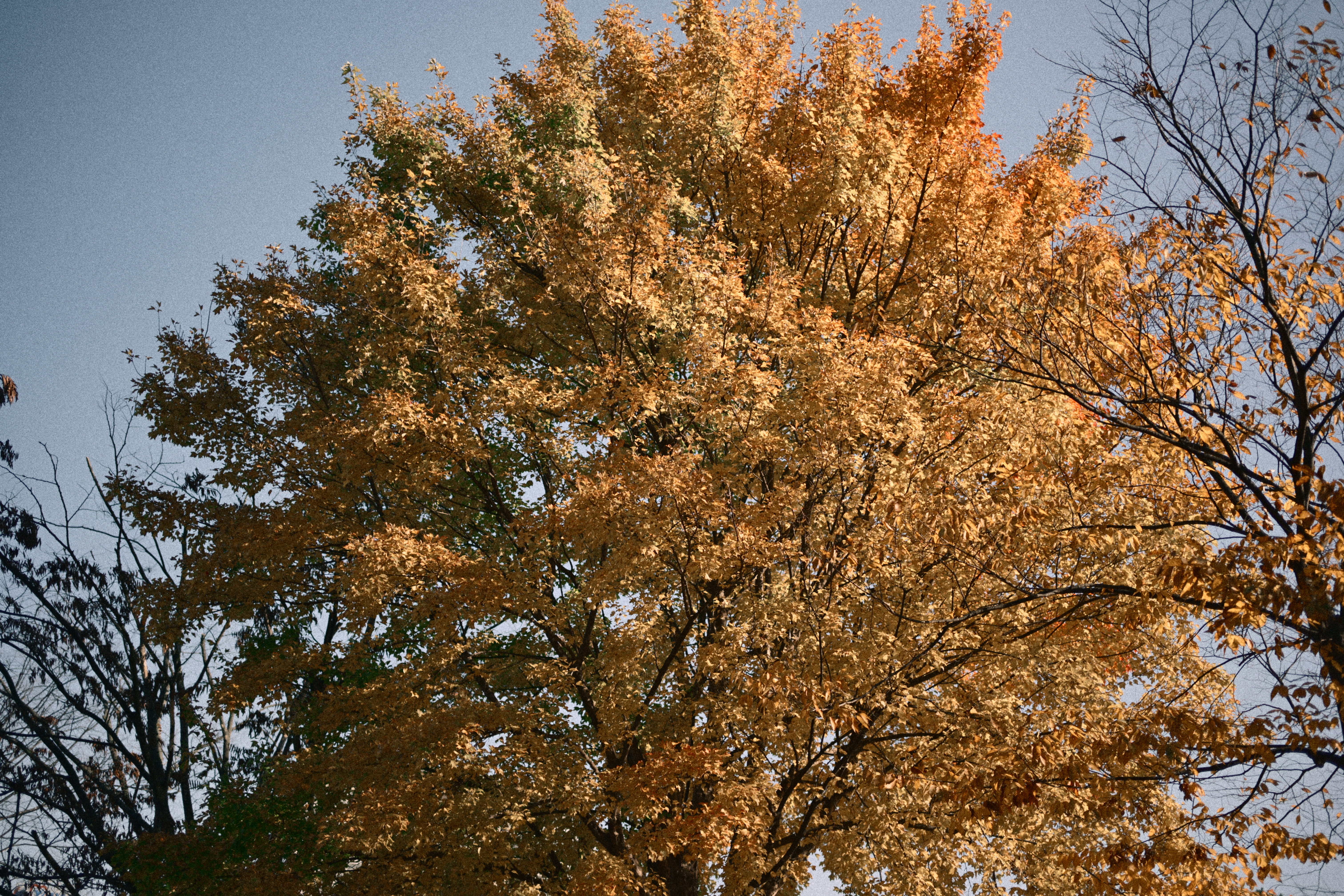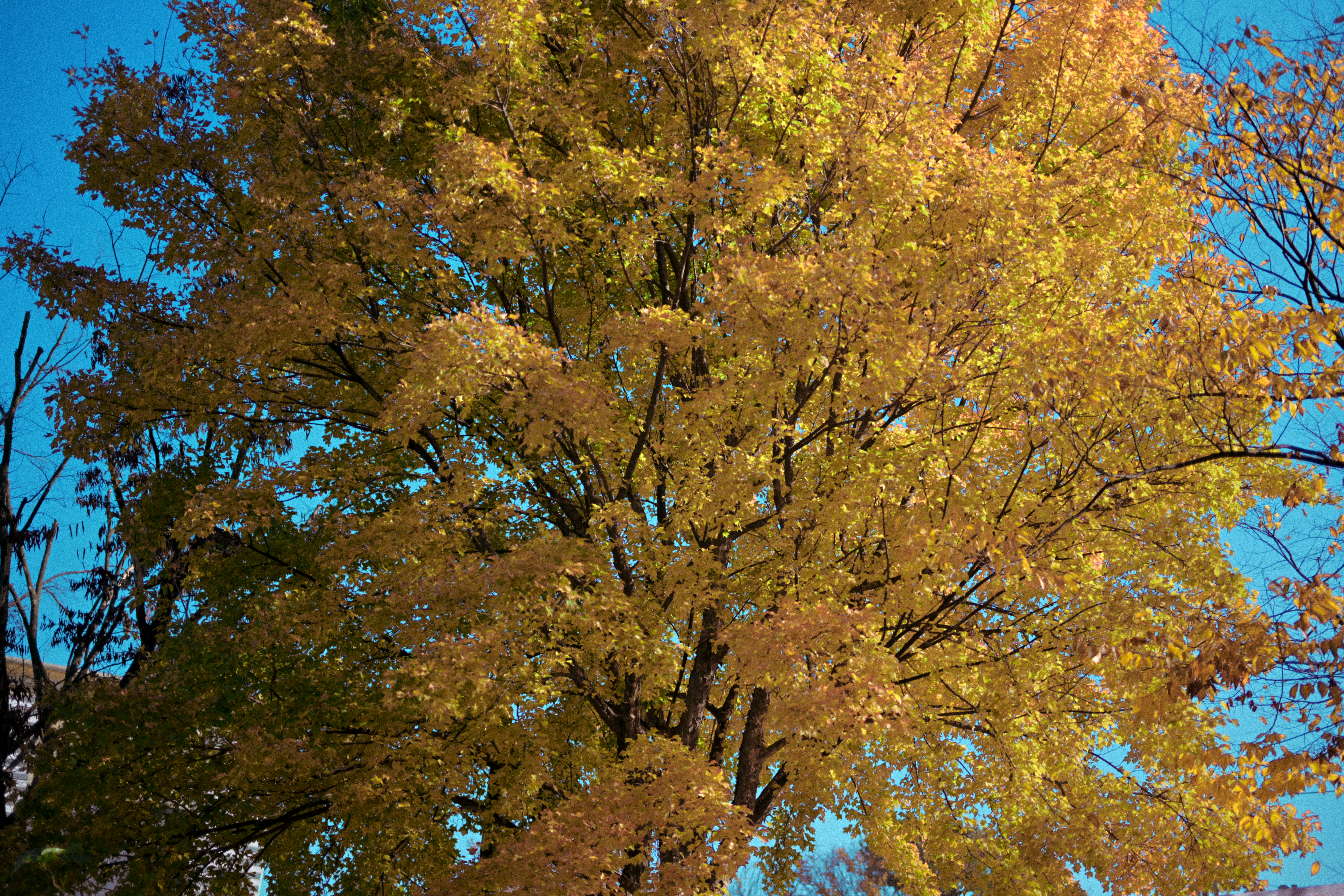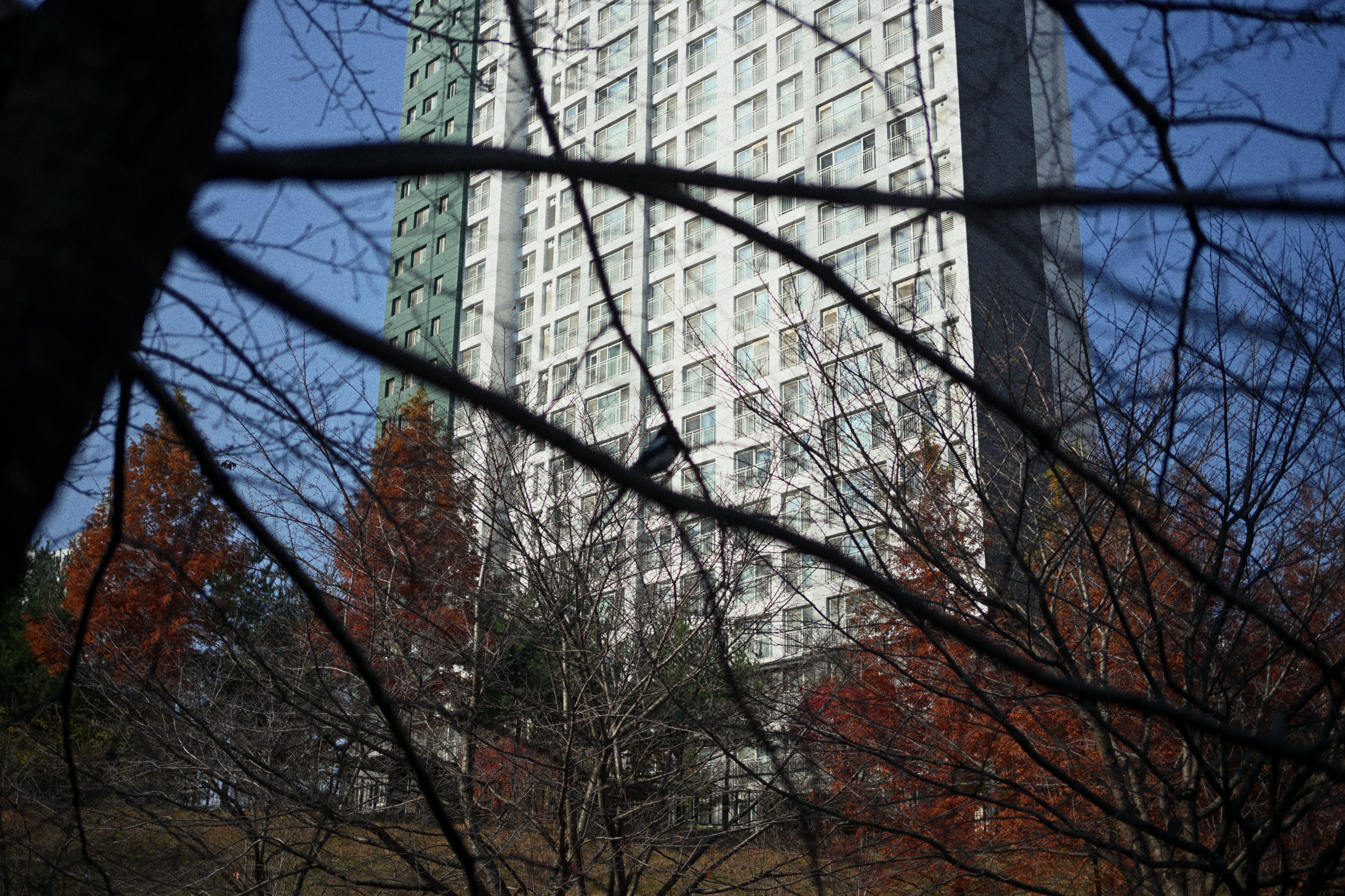 사진을 색감만 조금 달리해서 두 장을 찍어봤는데, 결과물이 생각보다 마음에 들었다. 같은 나무를 바라보고 있는데도 색감이 달라지니 전혀 다른 계절처럼 보인다. 하나는 부드럽고 약간 무거운 톤이라 늦가을의 고요함이 느껴졌고, 다른 한 장은 하늘색이 과장되어서 다른 분위기를 연출할 수 있다는 것이 참 재미있었다. 같은 피사체라도 색감에 따라 이렇게 다르게 표현될 수 있다는 점이 새삼 신기했고, 그래서 사진 작업이 더 좋아지는 것 같다. 지금 보는 시선을 그대로 담아내는 것도 좋지만, 색을 조금만 바꿔도 전혀 새로운 느낌이 생기니, 마치 다른 장소를 여행하는 것 같은 기분이다.