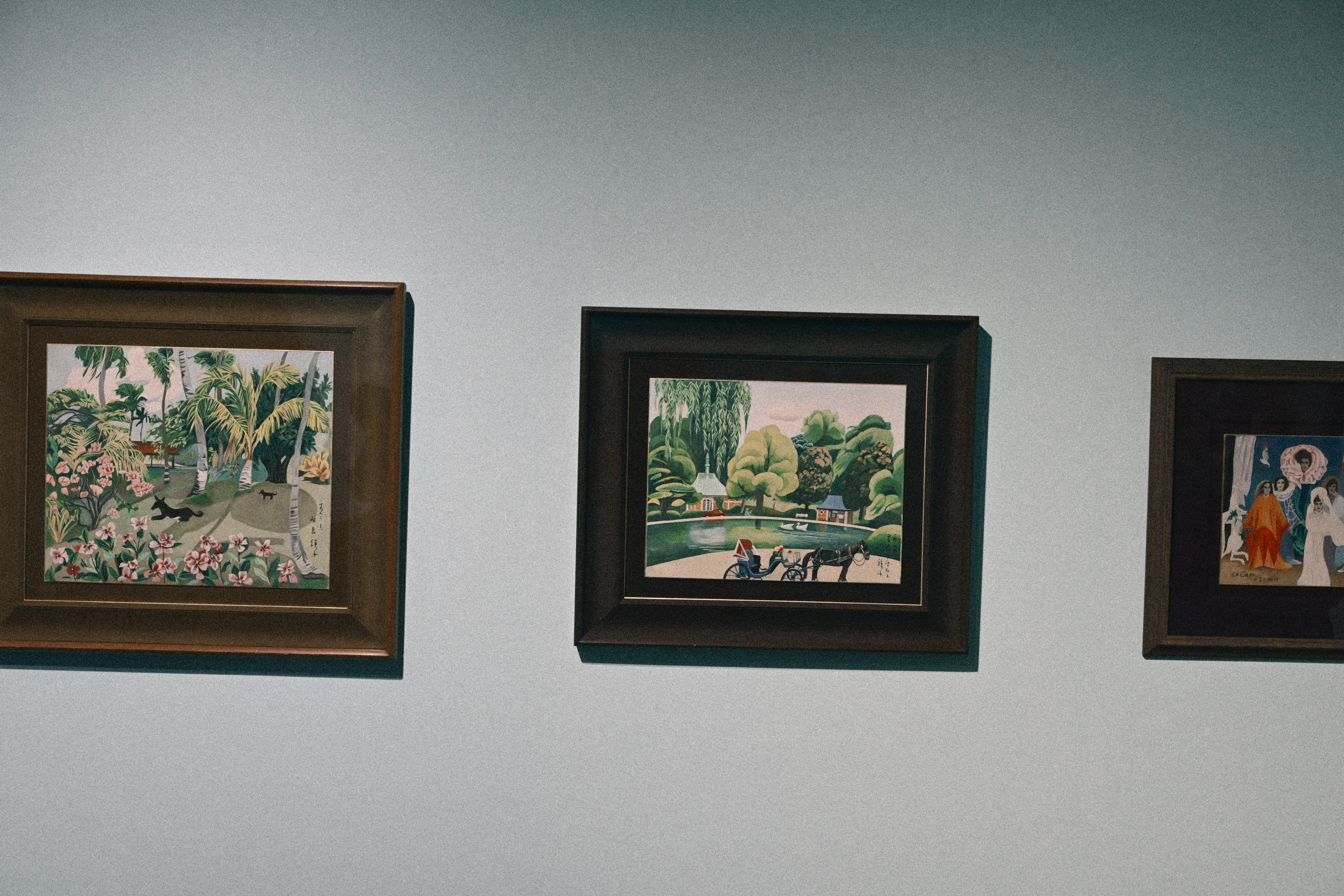카와시마 코토리의 사진이 시간을 풀어놓는 쪽이라면, 천경자의 그림은 시간을 붙잡아 세워두는 쪽에 가까웠다. 색은 분명하고, 인물은 또렷했다. 시선은 정면을 피하지 않았고, 화면은 쉽게 물러서지 않았다. 특히 인물의 얼굴이 오래 남았다. 아름답다거나 강렬하다는 말로는 부족했다. 어딘가 현실에 속하지 않은 듯한 표정, 그러나 분명 살아 있는 사람의 기척이 느껴지는 얼굴. 사진과 달리, 그림은 나를 바라보고 있다는 인상이 강했다.