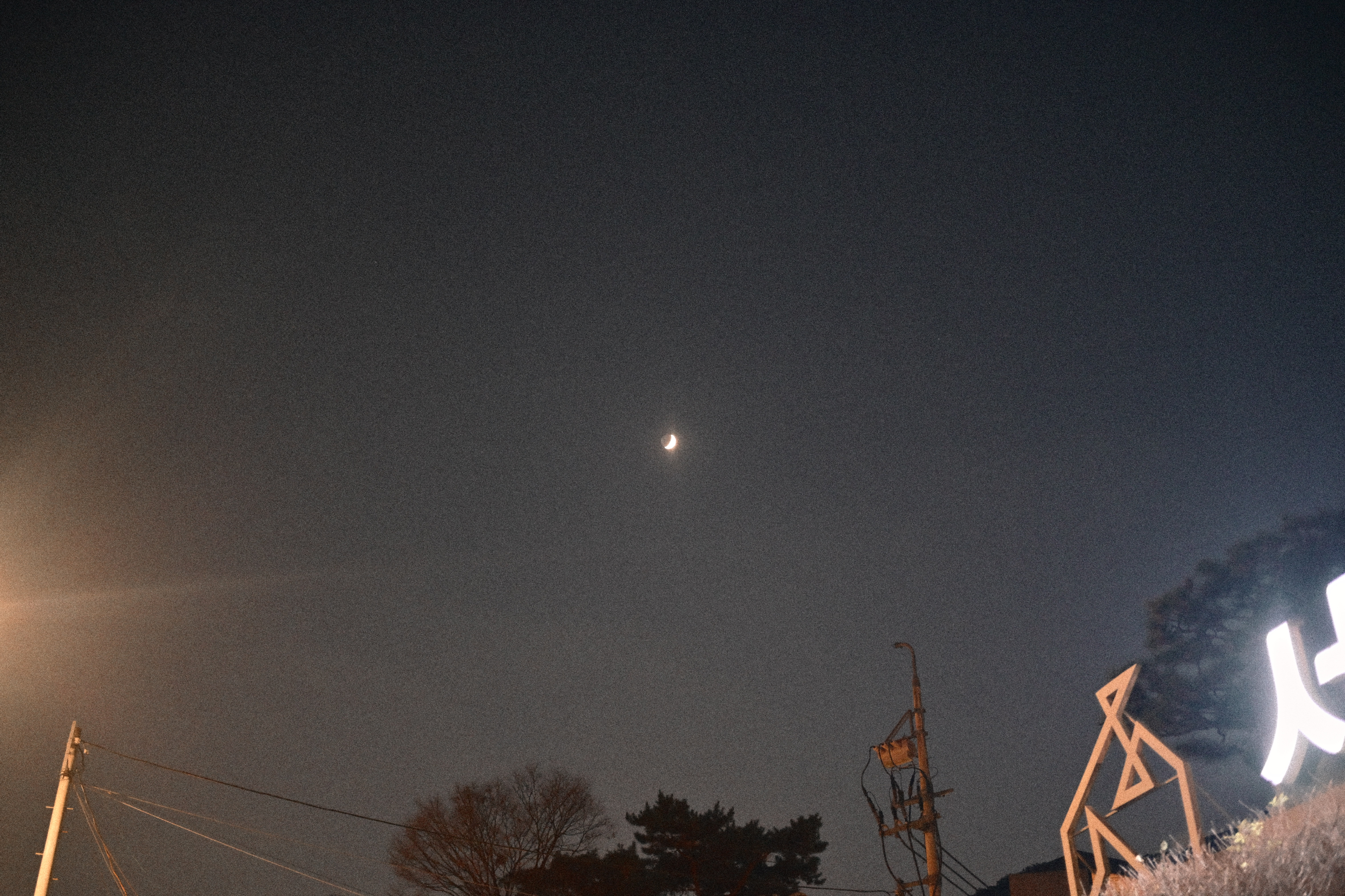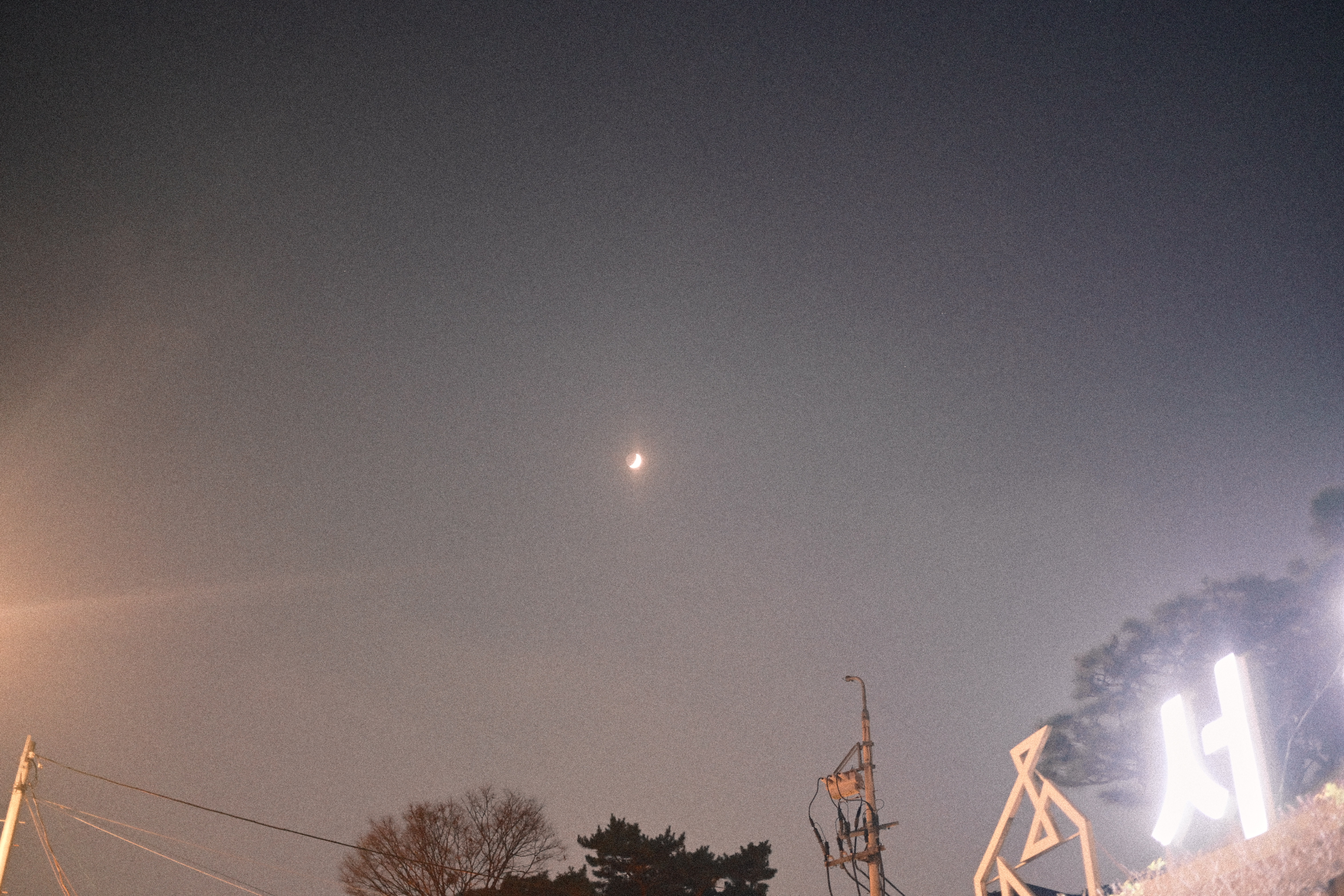 그리고 동시에 알고 있었다. 내 렌즈로는 이 달을 제대로 담기 어렵다는 걸. 셔터를 눌러보니 예상대로였다. 확대하면 형태는 흐려지고, 빛은 번지고, 달은 내가 본 것보다 훨씬 가벼워진다. 달 하나만 놓고 보면 사진은 부족하다. 부족하다는 걸 알면서도 몇 컷을 더 찍었다.