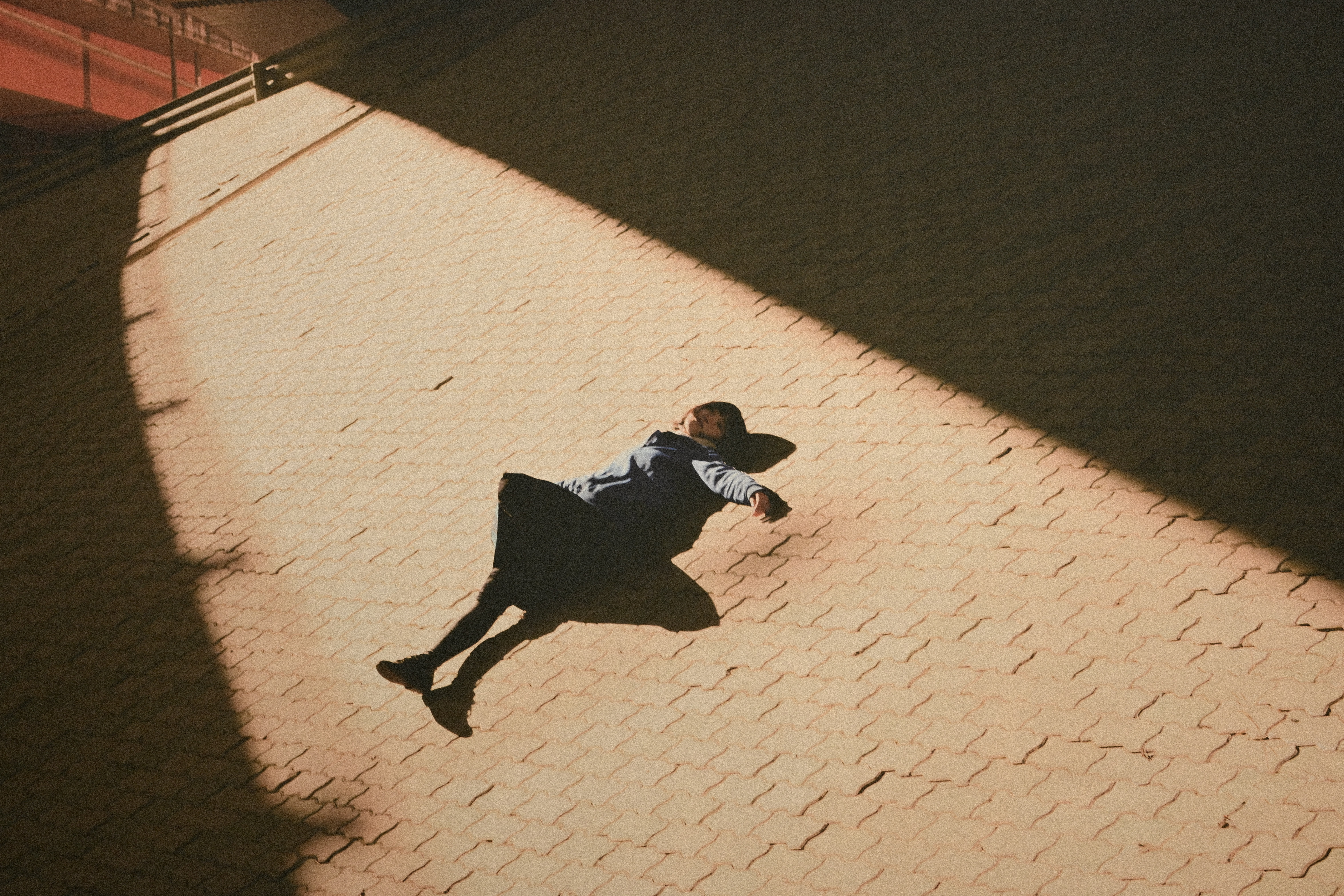 인물의 얼굴 위로 스치는 미묘한 빛, 피부에 남은 온기, 눈동자에 맺힌 반사. 이 모든 것이 하늘보다 먼저 말을 건다. 그렇다고 인물이 감정을 설명하지도 않는다. 웃지도, 울지도 않는다. 다만 그 자리에 있다. 기울어진 모습은 불안하다. 하지만 그 불안이 사진을 흔들지는 않는다. 오히려 안정감을 만든다. 세상이 약간 비틀어진 채로 흘러가고 있다는 사실을, 이 인물은 이미 알고 있는 것처럼 보인다. 그래서 표정은 담담하다.
